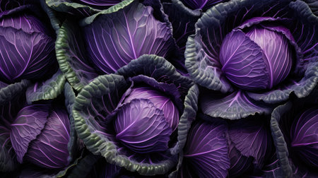 A closeup view of stunning purple cabbages depicting their vivid, rich colors and intricate textures beautifully