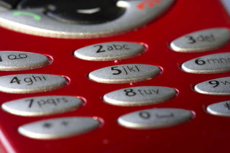Macro shot of red mobile phone with number 5 focused, shallow depth of field