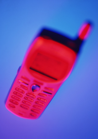 Red mobile phone on a blue background.