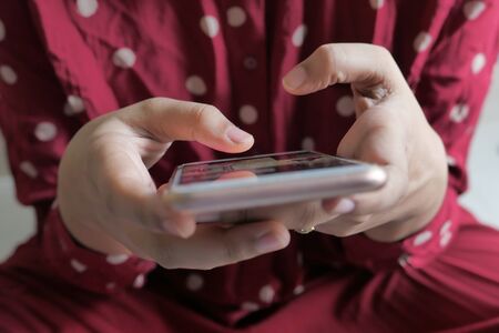 Close up of women use smart phone at night