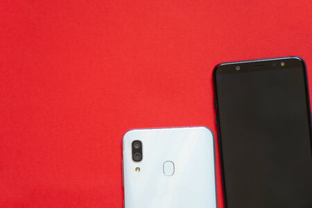 new touch phone on red background