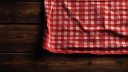 A vibrant red and white checkered tablecloth rests on a textured surface, adding a warm touch to any dining setting, perfect for culinary displays or home decor.