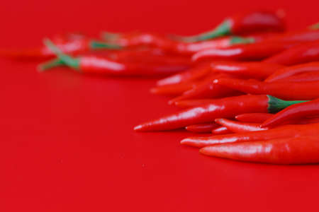 Red hot chili peppers arranging with white background and blank space. Garnish and food ingredients.