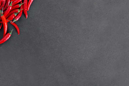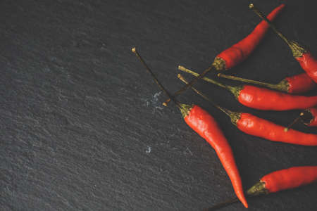 Chillies on slate, stone grunge texture. Vintage tone. Food Copy Space