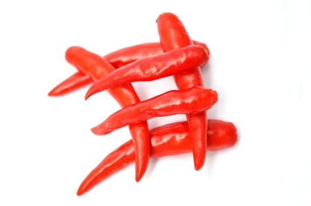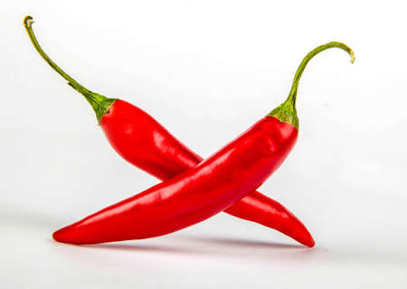 Red hot chili peppers arranging with white background and blank space. Garnish and food ingredients.