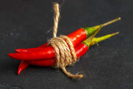 Ripe red hot chili peppers close-up. Vegetables for Mexican dishes