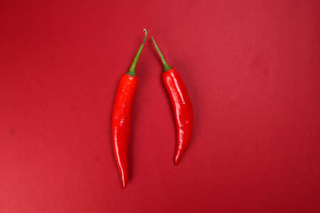 Vegetables and food. Red pepper chili spicy isolated on a red background. High quality photo