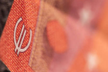 Close-up shot of Euro sign and text present on a banknote