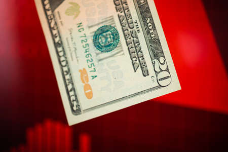 US dollar currency laundering and red stock market chart concept. Illegal and crime corruption background
