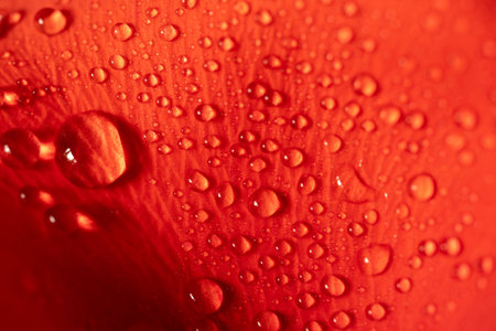 Red tulip petals with water drops close-up macro photography