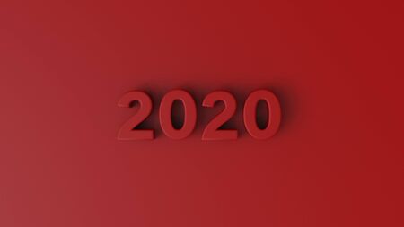 Red numbers of New Year 2020 with shadow. 3d render