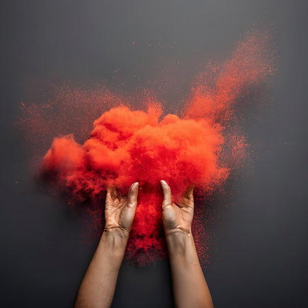 An explosion of red colored dust on a blue background