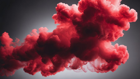 A captivating and surreal image of swirling, dense red smoke clouds blending with dark, curling wisps, evoking a sense of mystery. It showcases the ethereal beauty of vapor and contrast. AI generated image