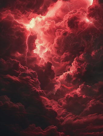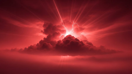 AI Generated. Dramatic abstract red lightning cloud banner with an electrifying atmosphere