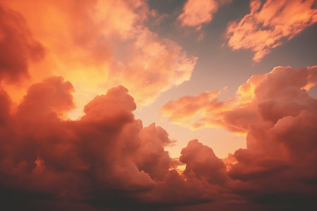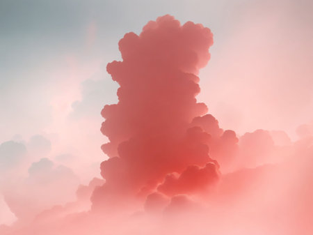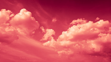This image features stunning fluffy clouds set against a vibrant coral background, creating a dreamlike and artistic atmosphere perfect for any creative project.