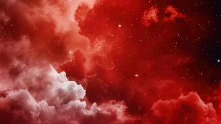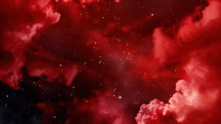 This vivid cosmic background features rich red and black hues with scattered stars and ethereal clouds, perfect for use in science fiction or astrological designs.