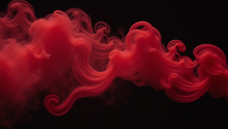 Abstract swirling red smoke with dark black negative space creates a dramatic and energetic visual effect.