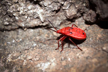 Red Cotton Bug, Cotton Stainer Bug,Small red insect is a pest causing the plant to grow unhealthy.