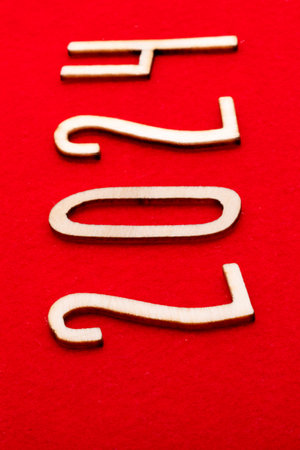 2024 wooden numbers on a red background