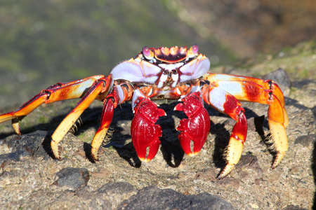 Moorish Crab or Red Rock Crab (Grapsus adscensionis) on a stone
