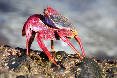 Red crab on the cliff close to the ocean on the Canary Islands.