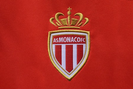 BELGIUM - OCTOBER 18: the logo of AS Monaco n Brussels Belgium on club official jersey on October 18, 2015.