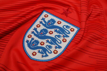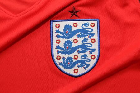 BANGKOK, THAILAND - JUNE 4 : the logo of England National Football Team on Football Jersey on June 4,2018