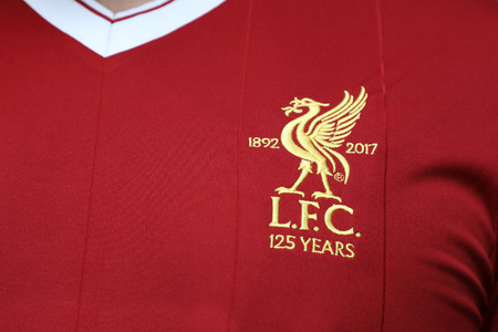 BANGKOK, THAILAND - JULY 12: The Logo of Liverpool Football Club on the Jersey on July 12,2017 in Bangkok Thailand.