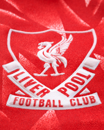 Bangkok, Thailand - January 17 2019: Close-up of Liverpool FC football home jersey circa 1989-1991 with club's emblem