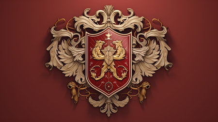 Luxury coat of arms isolated on black background. Medieval period, generative ai