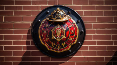 That the image is generated using AI. Shield with raised fist emblem on stone steps outdoors.
