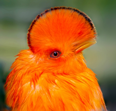 Male Guyanian Cock of the Rock displaying its crest of Orange feathers, Amazon, Brazil