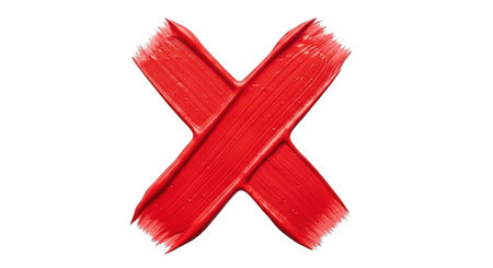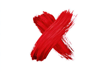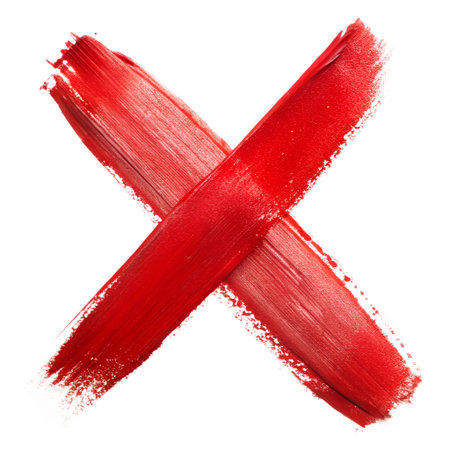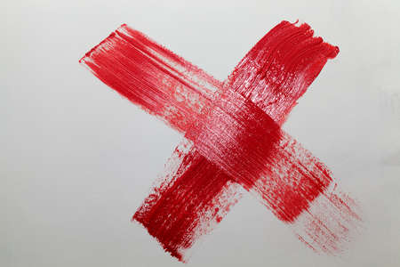 A bold red X shape formed by thick brush strokes with visible texture and chalky edges. red, x, mark. red x mark brush stroke...