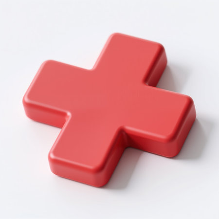 Bold red marker cross on pristine white, commanding attention, symbolizing urgency, aid, life-saving, vital for emergency kits