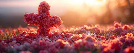 Cross made of flowers close up. Concept Floral Cross, Close-Up Shot, Religious Symbol, Nature Photography