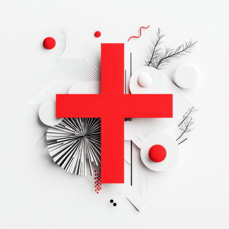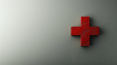 A striking red cross stands out against a white background, evoking themes of healthcare, assistance, and medical services.