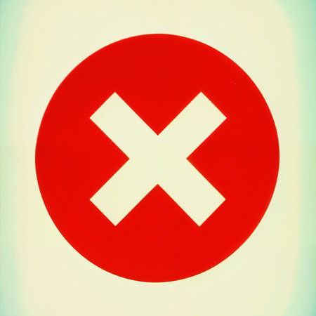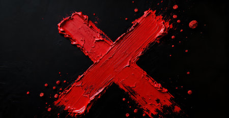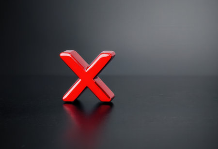 A glossy red X sign placed on a sleek black surface, creating a sharp contrast. The sign reflects light, drawing attention to its bold color and shape.