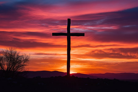 Sacred Crucifix Silhouette Against a Dramatic Sunset Sky Signifying Redemption and Faith