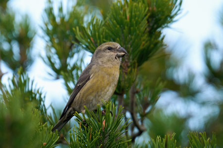 Parrot crossbill (Loxia pytyopsittacus) in its natural enviroment