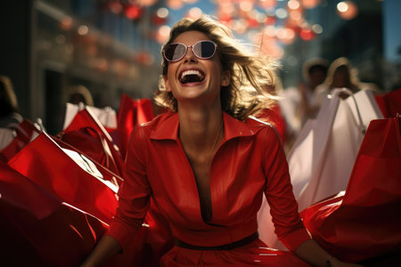 Shopping delight - happy woman holding soft shopping bags, essence of the shopping concept and the satisfaction and joy that comes with finding great deals and favorite items