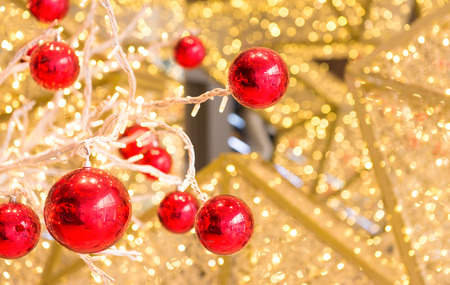 Christmas baubles or balls , close up, festive blurred background