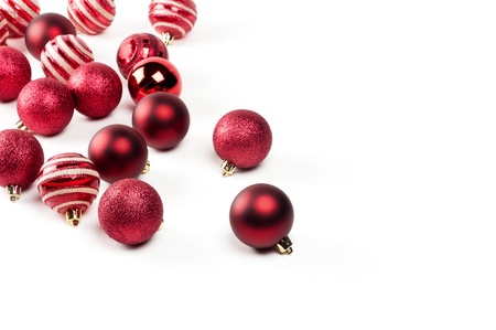 Red winter holiday ornaments isolated over white. Suitable for Christmas and New Year's themed designs