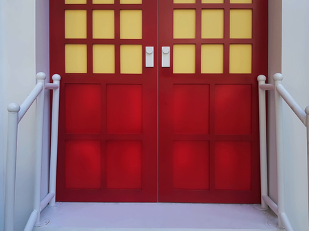 Single elevator door is standing out from a red background symbolizing business opportunity