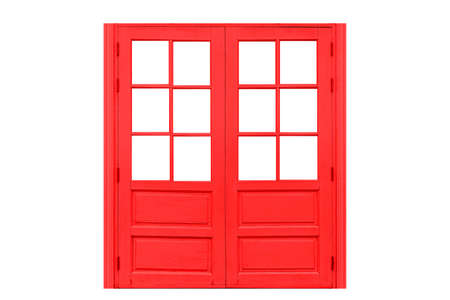 Classic red front door of a colonial-style house with white trim. No people. Text space