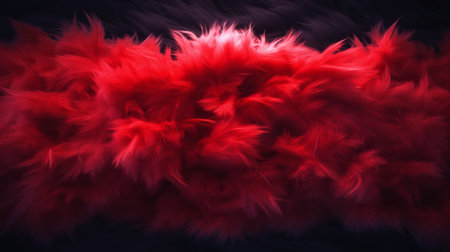 Red and orange colored blur fluffy abstract texture background with copy space. Fabric pattern backdrop, macro.
