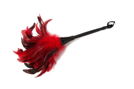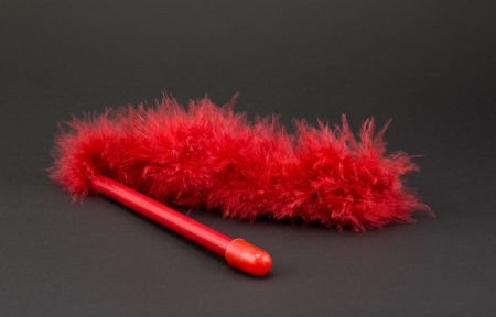 Soft feather broom on the brown carpet, Broom made of chicken feathers