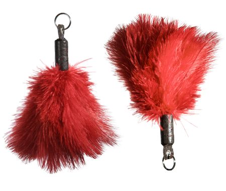 Two mops from an ostrich's feather for dust cleaning. Studio isolation on white background.
