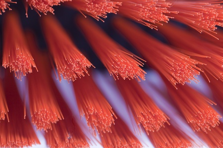 Synthetic fiber photos There is a space between the fibers. Tidy weave, red fiber, high magnification, super macro
