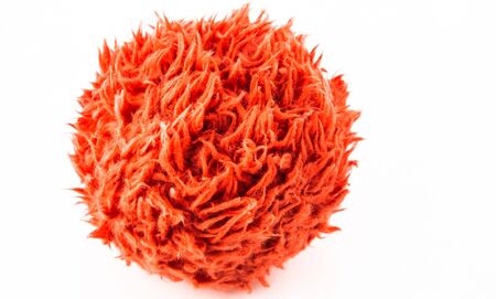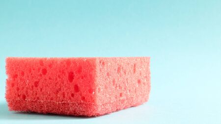 One red sponge on a blue background is used to wash and erase the dirt used by housewives in everyday life. They are made of porous material. Saving detergent, which allows you to use it sparingly.