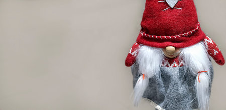Christmas greeting card, cute gnome, empty copy space for text, winter season, holidays
